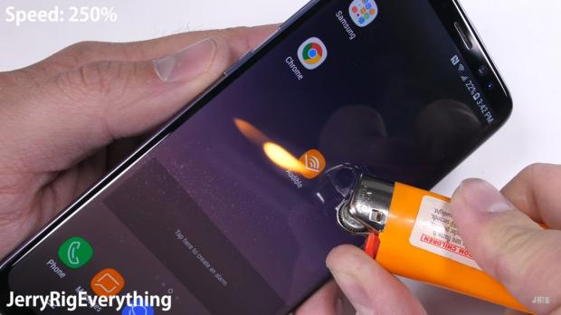 Với thử nghiệm hơ lửa, phải mất đến 30s để vết trắng xuất hiện trên màn hình của Galaxy S8 và vết xước này cũng nhanh chóng mất đi vài giây sau đó.