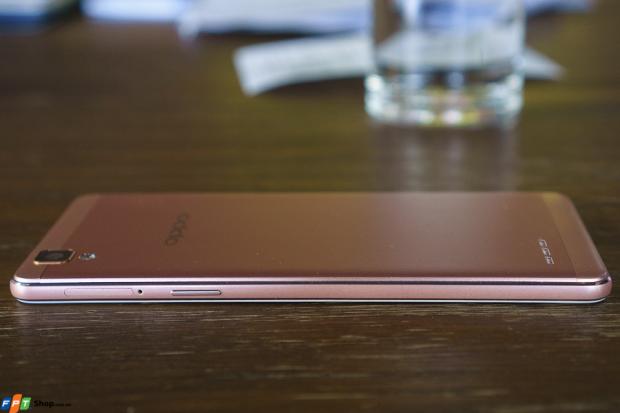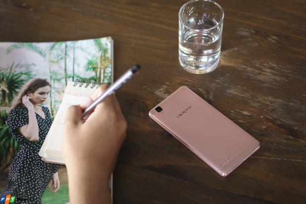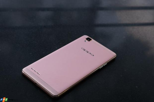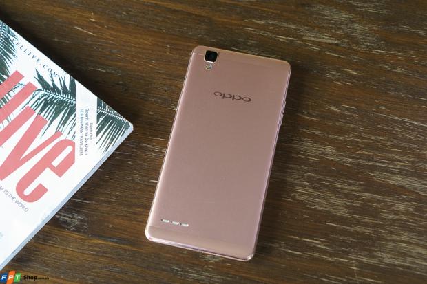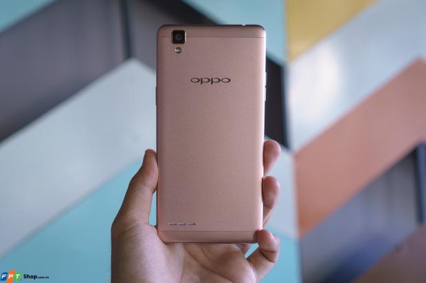Phần mặt lưng và khung của máy được hoàn thiện bằng kim loại và đồng màu với nhau tùy theo phiên bản mà người dùng lựa chọn, bao gồm vàng (gold) và vàng hồng (rose gold). Trong đó, màu hồng trên chiếc OPPO F1 là màu hồng nhạt và màu sắc này sẽ thay đổi tùy theo góc nhìn cũng như cách mà ánh sáng phản chiều vào nhưng vẫn không quá rực rỡ, hài hòa và rất là dịu mắt.