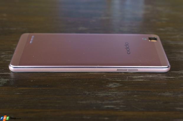 Như đã nói ở trên, cả OPPO F1 và R7 Lite đều sở hữu kiểu dáng và kích thước khá tương đồng nhau nhưng model mới lại dày hơn người 'đàn anh' một chút (7,25 mm so với 6.3 mm). Tuy nhiên, khi nhìn tổng thể thì OPPO F1 vẫn rất đẹp, trọng lượng vừa phải và trông rất gọn gàng khi cầm trên tay.