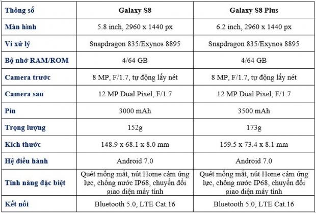 Galaxy S8 có pin dung lượng 3.000 mAh, trong khi Galaxy S8 Plus trang bị pin 3.500 mAh, cả 2 chạy trên nền tảng Android 7.0 mới mẻ.