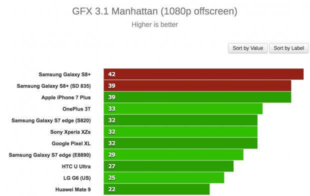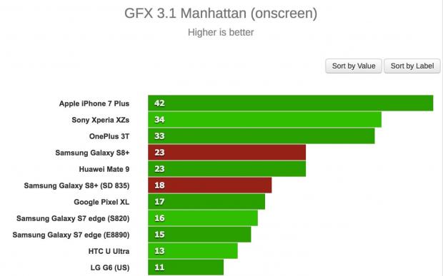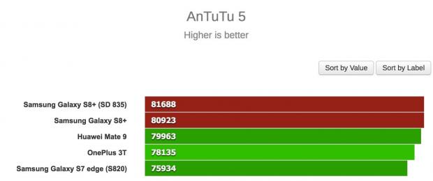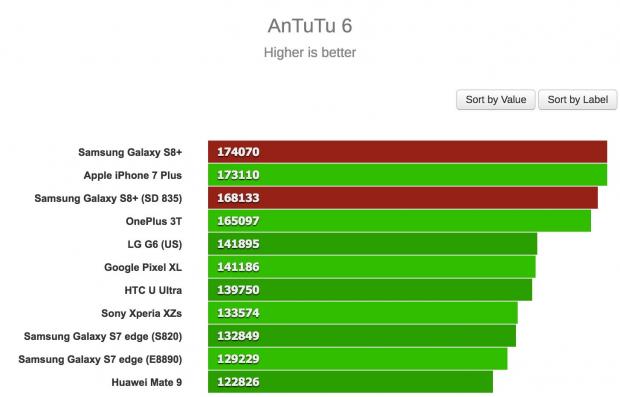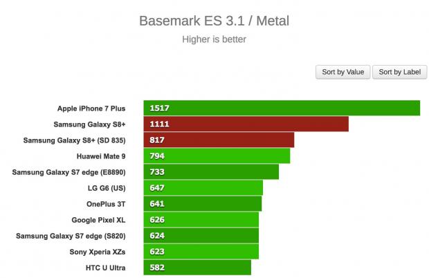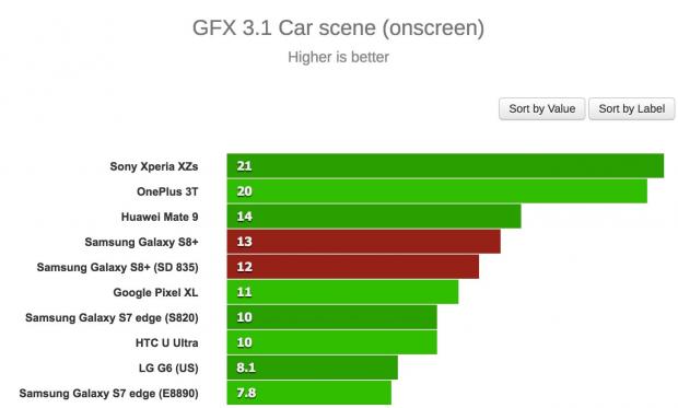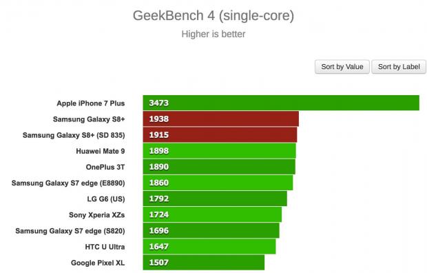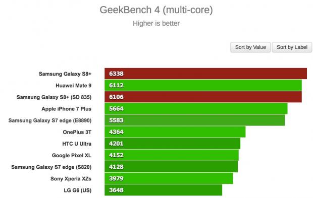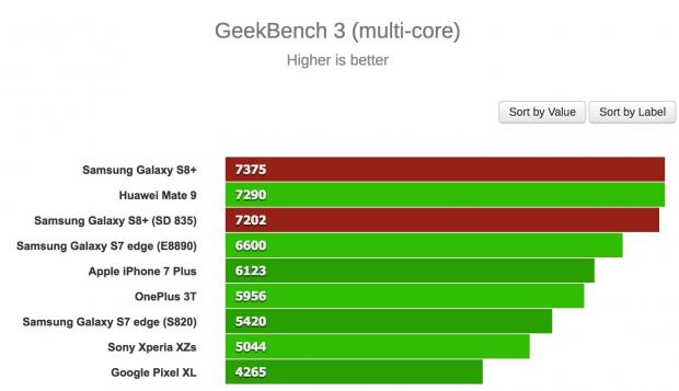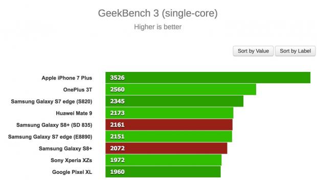 Đầu tiên, trang GSMArena đã thử benchmark hai phiên bản S8+ với nhiều chế độ khác nhau và bản Exynos chiến thắng trong hầu hết các trường hợp. Thậm chí, chiếc S8+ bản Snapdragon 835 còn bị “qua mặt' bởi một số thiết bị cũ hơn như Huawei Mate 9 trong bài test multi-core của GeekBench 3, hay thua S7 edge trong bài test single-core.