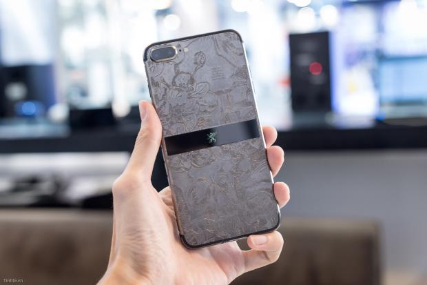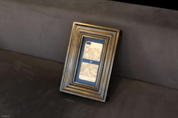Phần màu đen ở chính giữa được làm từ kính Sapphire dùng để đặt logo của Mobiado chứ không còn logo quả táo của Apple. Cá nhân mình thấy đoạn màu đen này nhìn không hợp mắt với thiết kế chung. Có lẽ Mobiado muốn logo của họ dễ thấy hơn so với việc khắc logo trên nền vàng. Ngoài ra, phía dưới mặt lưng còn khắc số thứ tự của máy (xxx/200), tên máy đầy đủ và dòng chữ 'Crafted in Vancouver'. Cấu hình của máy tất nhiên vẫn được giữ nguyên và giống hệt như những chiếc iPhone 7 Plus khác.