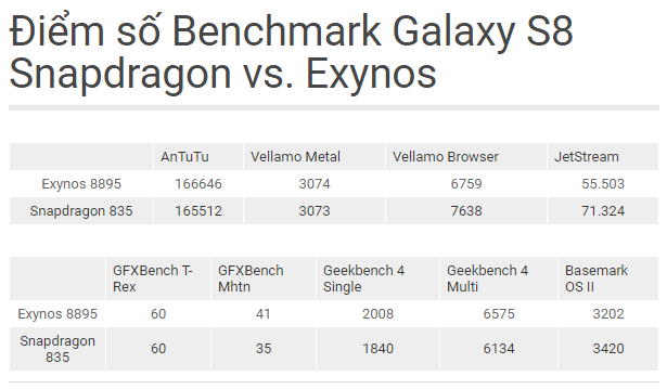 Tuy vậy mình vẫn không thể nói Snapdragon 835 hơn hay Exnos 8895 hơn được bởi mỗi hệ thống xử lý đều có mặt mạnh riêng. Phiên bản nào hợp với bạn, hãy cùng thảo luận bên dưới nhé!