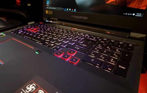 Nhằm mang đến những trải nghiệm tốt nhất cho các game thủ, Acer Predator 17 còn được trang bị bàn phím chuyên dụng chuyên nghiệp Predator Prozone với thiết kế rộng rãi, độ nảy tốt, hành trình phím dài cho cảm giác thoải mái hơn khi chơi game. Thêm vào đó, bàn phím này còn được tích hợp 4 phân vùng đèn LED mang 4 màu sắc khác nhau cho phép game thủ thao tác một cách chính xác nhất trong những điều kiện ánh sáng yếu.