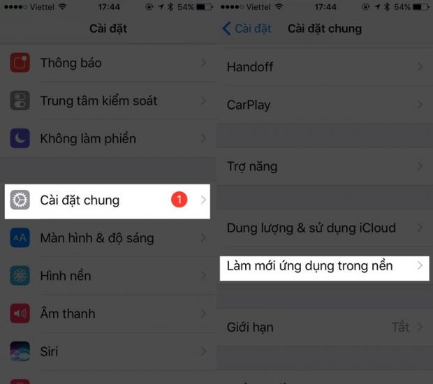 Truy cập vào Cài đặt > Cài đặt chung > Làm mới ứng dụng trong nền.