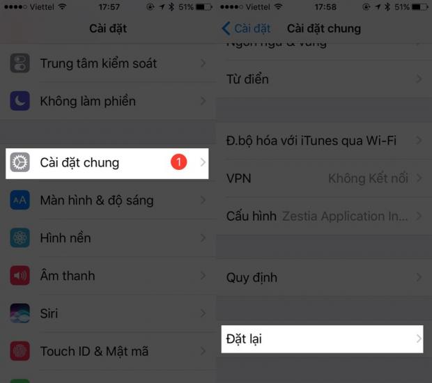 Để khôi phục đầu tiên truy cập Cài đặt > Cài đặt chung > Đặt lại.