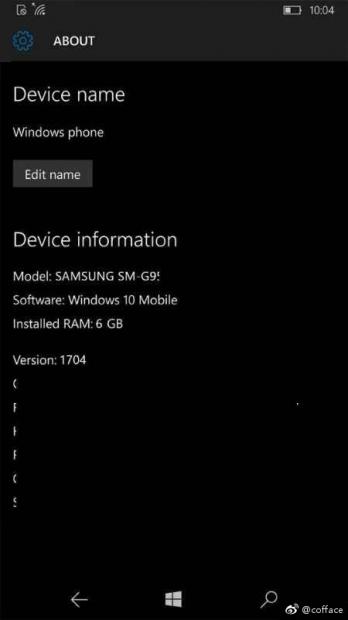 Ngoài ra, ảnh chụp màn hình được cho là của thiết bị này cũng đã được đăng tải với nhiều thông tin được phát hiện như RAM 6 GB và đang chạy Windows 10 Mobile mang số hiệu OS 1704. Trong khi đó, bản build chính thức mới nhất của Creators Update mới chỉ là 1703. Mặc dù vậy, đây chỉ là tin đồn và cả Samsung lẫn Gã khổng lồ phần mềm vẫn chưa đưa ra bất kỳ phản hồi nào.