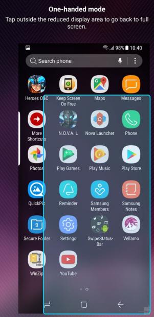 Cũng như điều kích thước của khu vực điều khiển khi dùng Galaxy S8/S8 Plus 1 tay. Thật tiện lợi phải không nào?