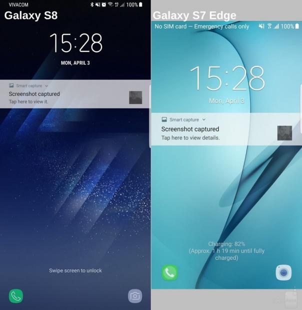 Về cơ bản, không có nhiều sự khác biệt ở đây. Ngoài tỷ lệ cạnh khác nhau (vốn do ảnh hưởng của thiết kế) như những ảnh chụp bên dưới, bạn sẽ khó có thể tìm thấy bất kỳ sự khác biệt nào về màn hình khóa và màn hình chính của Galaxy S7 Edge và S8 Plus.
