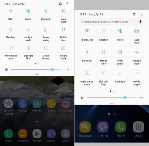 Bạn khó có thể phân biệt bất kỳ sự khác biệt giữa thanh thông báo và phần cài đặt nhanh của S7/S7 Edge và Galaxy S8/S8+. Về cơ bản, giao diện trên bộ đôi smartphone flagship mới của Samsung có giao diện tinh gọn và gọn gàng hơn.