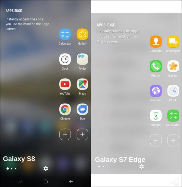 Kế thừa tính này trên S7 Edge, tất nhiên Galaxy S8/S8+ sẽ có nhiều cải tiến cho khu vực này. Bảng điều khiển cạnh bên có thể được kích hoạt bằng cách vuốt cạnh bên (trái hay phải đều được). Về cơ bản, phần này của hai điện thoại khá giống nhau về mặt thiết kế và tính năng tổng thể.