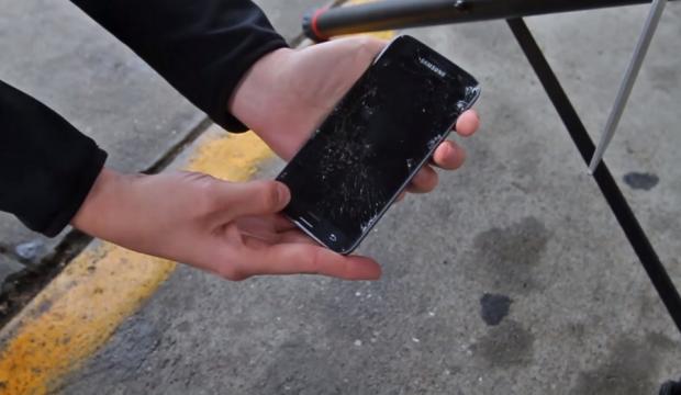 Galaxy S7 và iPhone 6s đều chứng minh cấu trúc bền chắc của mình qua thử nghiệm thả rơi từ trên cao. Sản phẩm của nhà Sam có dấu hiệu nứt vỡ và xây xát nhẹ ở cả hai mặt.