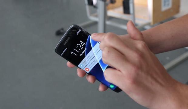 Sau một thời gian đưa vào máy lộn vòng, Galaxy S7 bị hư hại một chút ở phần viền màn hình trên trong khi đó mặt trước iPhone 6s đã nứt vỡ thành nhiều mảnh.