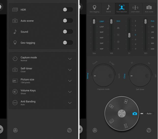 Giao diện cài đặt camera của Gionee S5.5 trông khá rắc rối