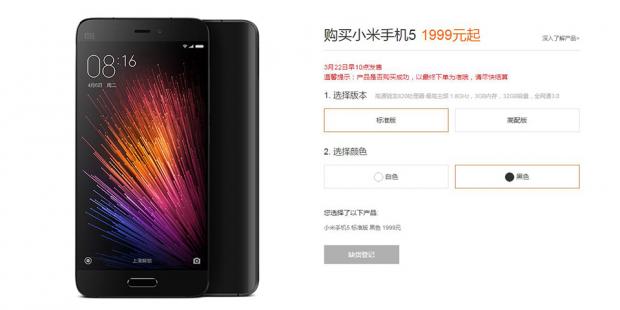 Hiện tại vẫn còn khá nhiều phiên bản Xiaomi Mi 5 chưa được bán, đó là các phiên bản màu vàng và đặc biệt là phiên bản vỏ gốm 128GB. Xiaomi đang không có được nguồn hàng ổn định để cung cấp cho người dùng, đồng thời họ cũng muốn dùng chiến lược phân đoạn sản phẩm để bán chạy hơn. Chính vì vậy có lẽ phải vài tháng nữa mới có đầy đủ tất cả các phiên bản Xiaomi Mi 5 được bán ra.