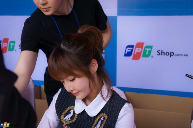 Diễn ra giữa thời tiết nóng bức nhưng buổi ký tặng của T-Ara thu hút sự chú ý của rất nhiều fan hâm mộ. Ước tính, có hơn 200 bạn trẻ đã tham gia vào buổi event chiều ngày 15/3 tại FPTShop.