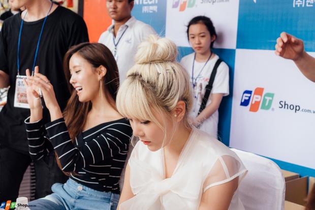 Tuy nhiên, không hề có cảnh tượng chen lấn, xô đẩy hay mất trật tự trong ngày nhóm nhạc nữ Hàn Quốc đến FPTShop. Các fan tôn trọng và tuân thủ chặt chẽ nhưng qui định của ban tổ chức, đặc biệt là không thể nhắc đến sự đóng góp nhiệt tình của đại diện bên FPTShop cũng như của nhóm nhạc nữ T-Ara.