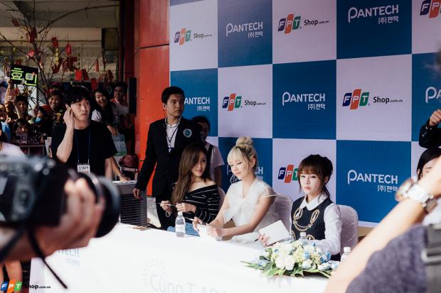Đúng như thông báo trước đó, chiều ngày 15/3, nhóm nhạc nữ đình đám tại Hàn Quốc, T-Ara đã có mặt tại cửa hàng FPTShop (số 7 Lê Đại Hành, Quận 11) với vai trò là đại sứ thương hiệu của Pantech, nhân sự kiện nhà sản xuất này giới thiệu hai mẫu smartphone mới tại thị trường Việt Nam là Pantech V950 và Pantech V955.
