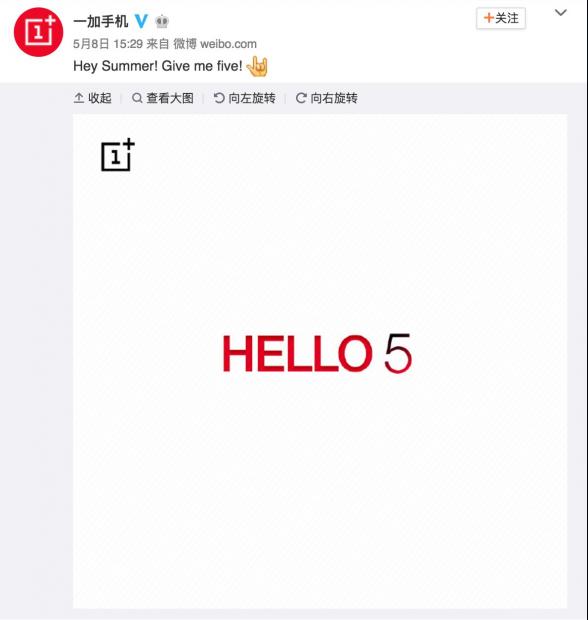 Sáng nay, OnePlus tung teaser 'HELLO 5, mùa hè vẫy gọi'. Đồng thời trên mạng xã hội Weibo cũng xuất hiện hình ảnh bản vẽ của OnePlus 5 cho thấy máy có tổng cộng 4 camera, sẵn sàng ngênh chiến với bất kỳ đối thủ camera kép nào.