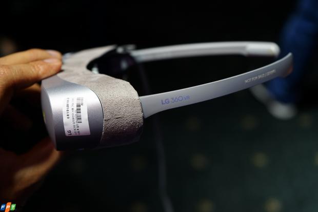 Về LG 360 VR, đây là chiếc kính thực tế ảo kết nối qua dây dẫn với LG G5, có khả năng làm việc độc lập với chiếc điện thoại để hiển thị giả lập hình ảnh từ một màn hình TV 130 inch ở khoảng cách 2m.
