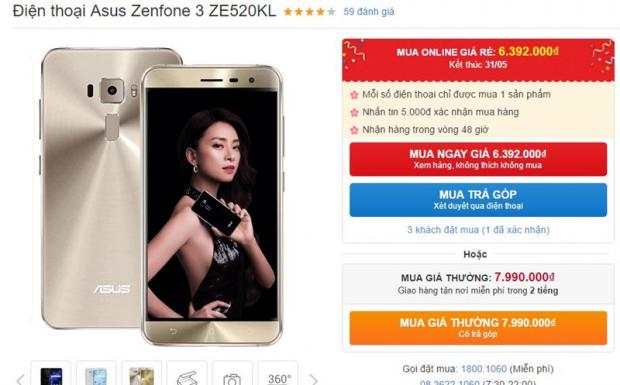 Theo đó, ZenFone 3 ZE520KL đã được giảm giá cực sốc, từ 7.99 triệu xuống còn 6.39 triệu đồng, giảm tới 1.6 triệu đồng. Lưu ý đây là chương trình mua online và thời gian sẽ kết thúc vào ngày 31/5.