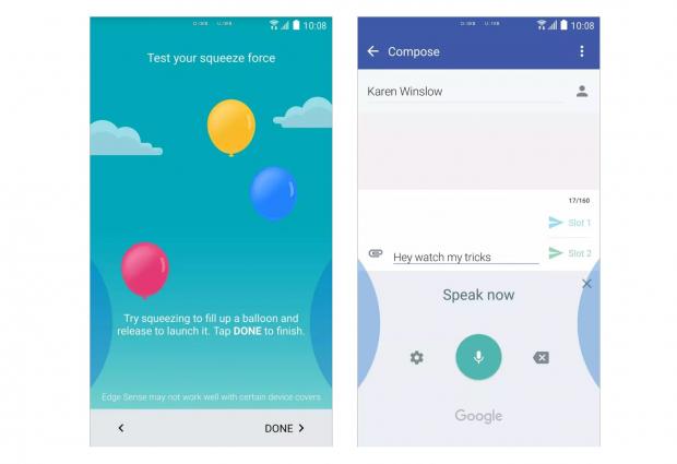 Một tấm screenshot hướng dẫn dùng bóp viền lúc chụp hình cũng xuất hiện, có lẽ bạn sẽ được bóp viền máy để chụp thay vì phải dùng hai tay để đưa ngón tay lên màn hình. Lúc ở màn hình chính, bạn cũng có thể bóp để gọi Google Assistant, còn khi đang viết tin nhắn thì bóp để chuyển qua chế độ nhập liệu giọng nói. Edge Sense sẽ xuất hiện trong chiếc HTC U 11, nghe nói giá rẻ hơn khoảng 100$ so với HTC U ultra. Hôm nay mình sẽ lên đường sang Đài Loan và thứ 3 là sự kiện ra mắt, sẽ trên tay cho anh em xem coi U 11 có gì hay không nhé.