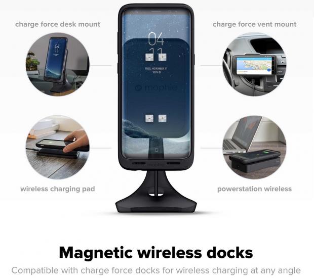 Hãng chuyên kinh doanh phụ kiện Mophie đã cho ra mắt phụ kiện ốp lưng cho Galaxy S8 kèm pin dự phòng, ốp lưng này có tên là Juice Pack có giá bán 100 USD.