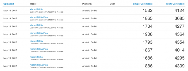 Kết quả benchmark của Xiaomi Mi 5S/5S Plus chạy chip Snapdragon 821