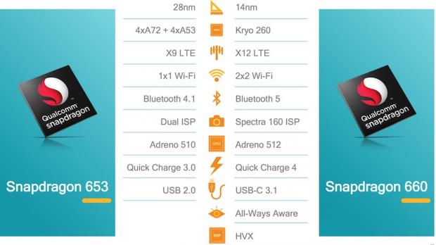 Được sản xuất dựa trên quy trình 14nm, Snapdragon 660 cung cấp hiệu suất hoạt động tốt hơn 20% so với Snapdragon 653. Snapdragom 660 sử dụng lõi 8 nhân với bốn lõi Kryo 260 xung nhịp 2.2GHz và bốn lõi Kryo xung nhịp 1.8GHz. Về xử lý đồ họa, 660 đi kèm với GPU Adreno 512.