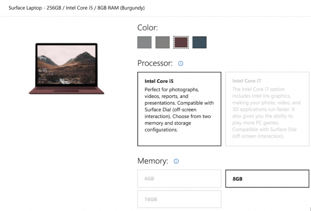 5. Mua Surface Laptop: bạn bắt buộc phải lựa chọn màu sắc hoặc cấu hình