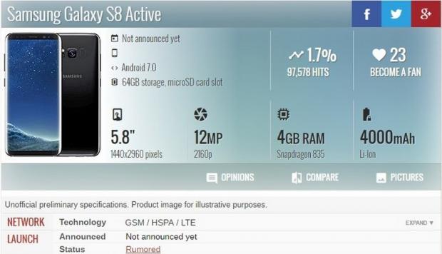 Theo nguồn tin từ gsmarena, thông số kỹ thuật điện thoại “nồi đồng cối đá” Galaxy S8 Active đã được tiết lộ chi tiết.
