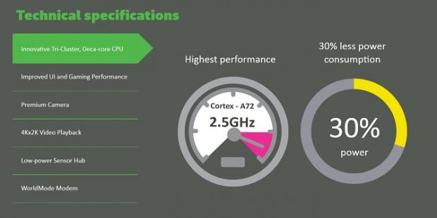 Hãng sản xuất chip Đài Loan MediaTek vừa giới thiệu bộ vi xử lý cao cấp mới nhất của họ là Helio X25 để cạnh tranh với Qualcomm Snapdragon 820. Trong khi Qualcomm chuyển từ 8 nhân xuống 4 nhân thì MediaTek vẫn trung thành với việc sử dụng nhiều nhân trên một bộ SoC. Helio X25 là một con chip có đến 10 nhân ở 3 cụm khác nhau bao gồm 2 nhân mạnh, 4 nhân trung bình và 4 nhân yếu. Trong đó 2 nhân mạnh nhất sử dụng kiến trúc Cortex A72 xung nhịp 2,5 GHz (cao hơn so với 2,3GHz trên Helio X20). MediaTek Helio X25 sử dụng bộ GPU đồ họa giống với Helio X20 là Mali-T880 MP4 nhưng xung nhịp được tăng từ 780MHz lên 850MHz.
