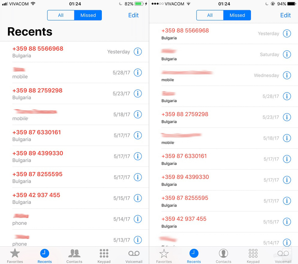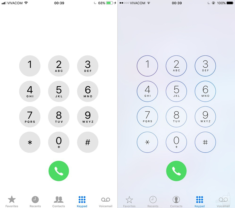 Giao diện cuộc gọi: chẳng hiểu sao Apple làm chữ Recent bự vậy làm gì?