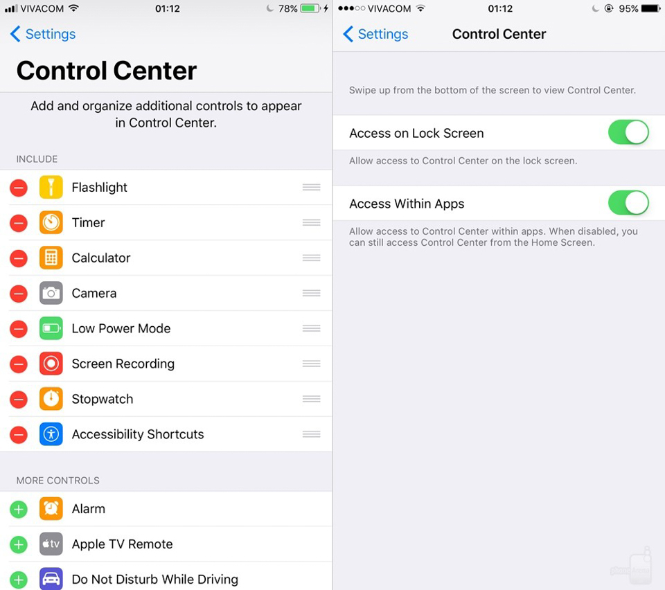 Ảnh trong bài sẽ là giao diện iOS 11 nằm ở bên trái và iOS 1 ở bên tay phải.
