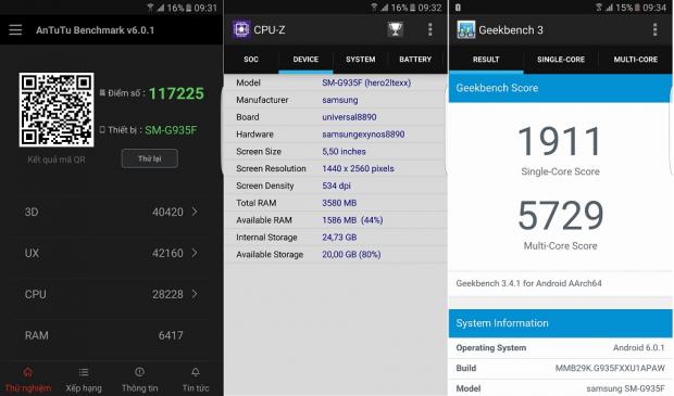 Kết quả về mặt thời gian hay trải nghiệm thì Galaxy S7 Edge đều đáp ứng rất tốt. Không có hiện tượng delay, tốc độ chuyển đổi giữa các ứng dụng và trò chơi rất nhanh. Đặc biệt dù có hơn 10 ứng dụng không nhẹ nhàng gì chạy nền thì Galaxy S7 Edge vẫn chưa phải load chút nào.