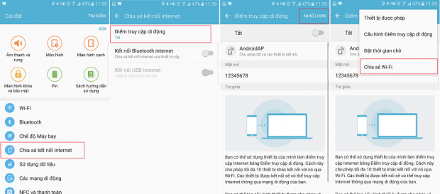 Và dưới đây là các bước để biến chiếc S7/S7 Edge của bạn thành một điểm thu/phát Wi-Fi: