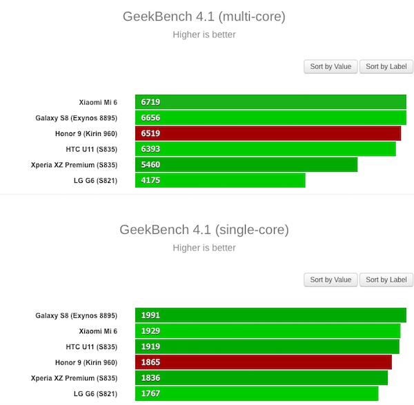 Điểm cấu hình khi đo hoạt động của cả tám nhân và một nhân của chip Kirin 960 cho thấy nó vượt trội các sản phẩm như LG G6, Xperia XZ Premium, tuy nhiên vẫn còn thua Xiaomi Mi 6 và Galaxy S8 mặc dù cách biệt không quá lớn.