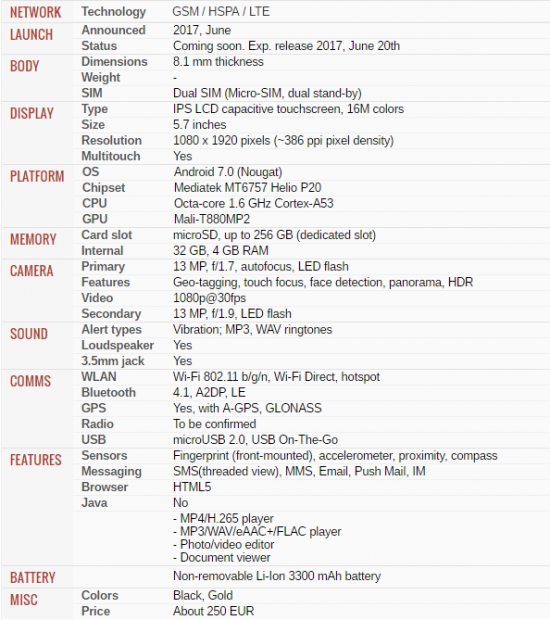 Theo gsmarena
