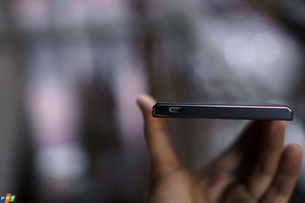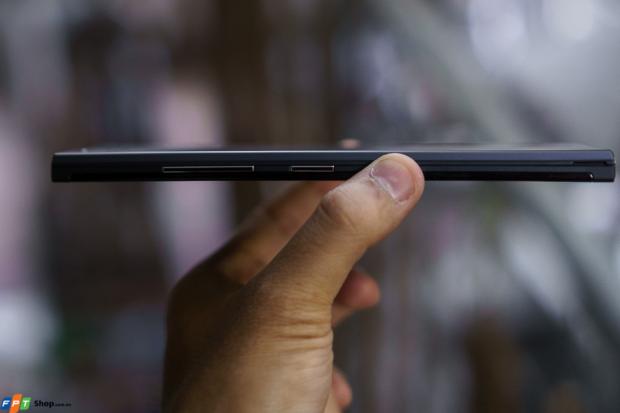 Tuy nhiên, điểm yếu là viền màn hình của máy khá dày, ở cả phần trên và phần dưới và hai bên. Vì thế, trong quá trình trải nghiệm có cảm giác không gian màn hình bị thu hẹp đi. Tất cả nút cứng được đặt bên phía cạnh phải, bao gồm nút nguồn và hai phím tăng, giảm âm lượng, lệch về phía bên trái ở cạnh dưới là cổng kết nối microUSB còn cạnh trên là vị trí của jack cắm tai nghe 3,5 mm.