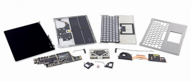 Theo iFixit mẫu Surface Laptop của Microsoft gần như không sửa chữa được. Các linh kiện bên trong được sắp xếp khá gọn gàng, cục pin lớn là phần chiếm gần hết không gian bên trong. Để được như vậy Microsoft đã phải hàn chết các linh kiện lại, vì vậy nếu hư hỏng hay thay thế thì rất khó. Và cũng lâu lắm rồi iFixit phải đánh giá Surface Laptop là thiết bị khó sửa nhất, được 0 điểm iFixit.