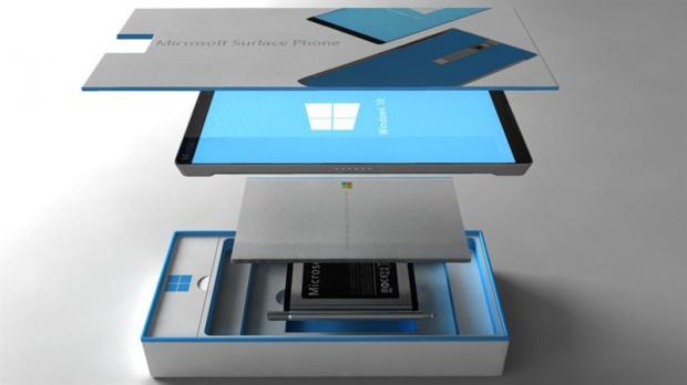 Vỏ hộp được làm bằng giấy cứng với 2 màu chủ đạo thân thiện là trắng tinh khôi phối với xanh da trời. Bên trong là nhân vật chính Microsoft Surface Phone, sách hướng dẫn sử dụng, bút cảm ứng và viên pin rời có thiết kế giống pin của các dòng máy Samsung.