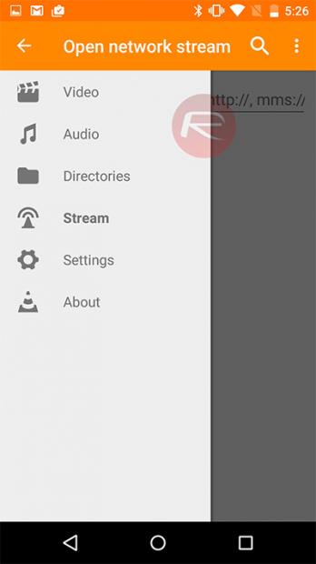 Sau khi quá trình cài đặt hoàn tất, khởi chạy ứng dụng, Chạm vào menu hamburger ở góc trên cùng bên trái. Tại đây, tiếp tục nhấn vào phần Stream. Dán dòng liên kết bên dưới vào hộp thoại mở ra, sau đó nhấn nút Play để bắt đầu theo dõi sự kiện.