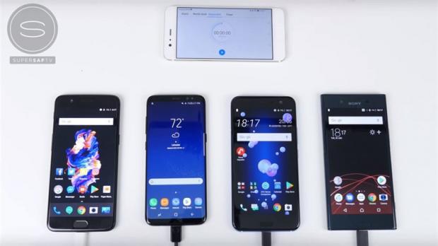 Chỉ sau hơn 30 phút, OnePlus 5 đã đạt 59 % pin, tiếp theo là HTC U11 và Xperia XZ Premium lần lượt là 43 và 41%, trong khi Galaxy S8 chỉ khiêm tốn với 36%. Tuy nhiên, flagship của Samsung đã tăng tốc trong 30 phút tiếp theo, đạt 72% sau một giờ và bỏ lại Sony với 69% pin. Trong khi đó HTC U11 đã ở mức 79%, và OnePlus 5 với con số cực kì ấn tượng 92%.