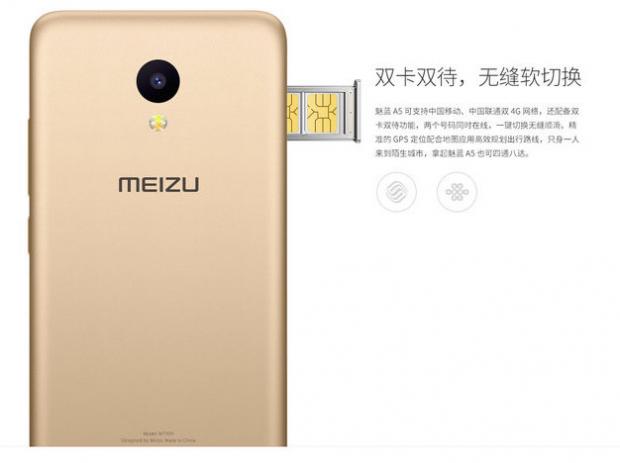 Hiện tại, Meizu A5 đang được bán ra với mức giá 699 Yuan (tương đương 2,34 triệu đồng) cùng các tùy chọn màu sắc bao gồm Matte Black, Silver và Champagne Gold.