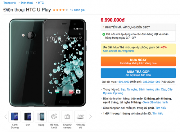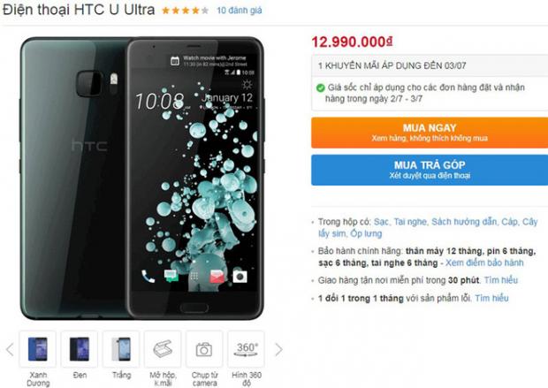 Có vẻ như sức mua vẫn chưa đạt như kỳ vọng, mới đây Thế Giới Di Động (nhà phân phối độc quyền của U Ultra và U Play tại Việt Nam) đã bất ngờ 'flash sale', tiếp tục giảm 2 triệu đồng cho cả hai chiếc máy này trong ngày 2/7 và 3/7. Mức giá mới của HTC U Ultra và U Play lần lượt là 12,99 triệu đồng và 6,99 triệu đồng.