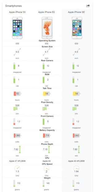 Tuy nhiên, iPhone SE chỉ có 1GGB bộ nhớ RAM thay vì 2GB trên 6s, camera trước 1,2MP so với 5MP trên iPhone 6s và điều quan trọng nhất có lẽ là độ phân giải màn hình thấp hơn.