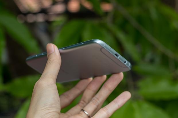 Thiết kế của J7 Pro cho cảm giác cầm rất tốt. Vỏ máy bằng nhôm được bo tròn lên đến hết phần khung, tạo cảm giác liền mạch một khối và rất dễ chịu khi cầm trên tay. Chưa hết, mép màn hình phía trên cũng cong theo 2,5D nên loại bỏ được gần như 100% cảm giác cấn tay.