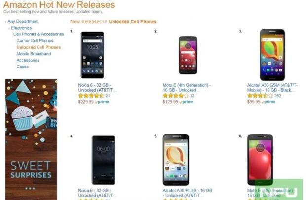 Mặc dù chỉ mới bán ra tại Mỹ nhưng Nokia 6 đang có một sự khởi đầu rất ấn tượng, chiếc điện thoại này hiện đang được xếp hạng là smartphone mở khóa bán chạy nhất trên Amazon.