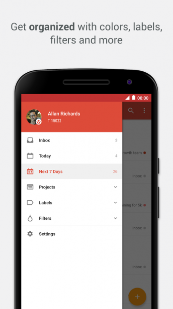 Todoist là một ứng dụng miễn phí và được sử dụng rất rộng rãi. Bạn có thể thiết lập các “dự án” khác nhau cho bản thân. Ví dụ như có thể có một cho công việc cá nhân, một cho công việc tại cơ quan và một cho danh sách thực phẩm hằng ngày. Mỗi nhiệm vụ bạn hoàn thành tăng ho bạn một số điểm Karma. Những điểm này thực sự không giúp bạn có được phần thưởng nào nhưng chúng được tạo ra để khuyến khích bạn sử dụng Todoist hơn. Todoist là ứng dụng miễn phí nhưng vẫn có phiên bản trả tiền với 29$/năm.