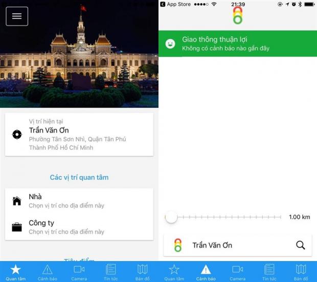 Camera: xem hình ảnh trực tiếp được chụp từ camera giao thông, vì lí do bảo mật, các bạn chỉ có thể quan sát được những camera trong bán kính 10KM trở lại.